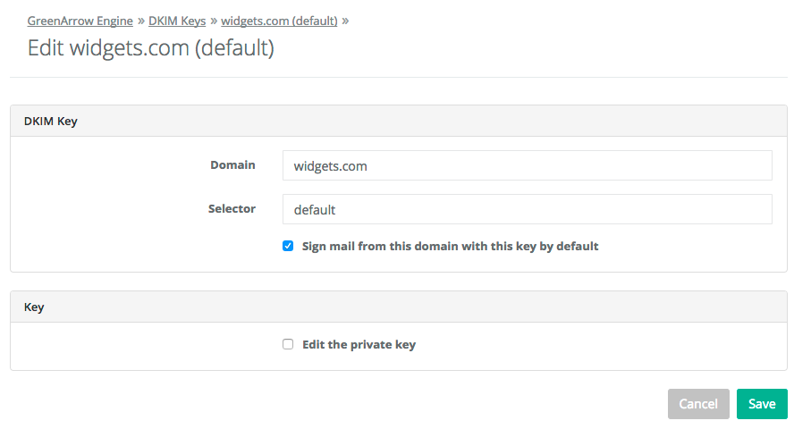 Changing GreenArrow Engine’s Default Signing Key for a Domain