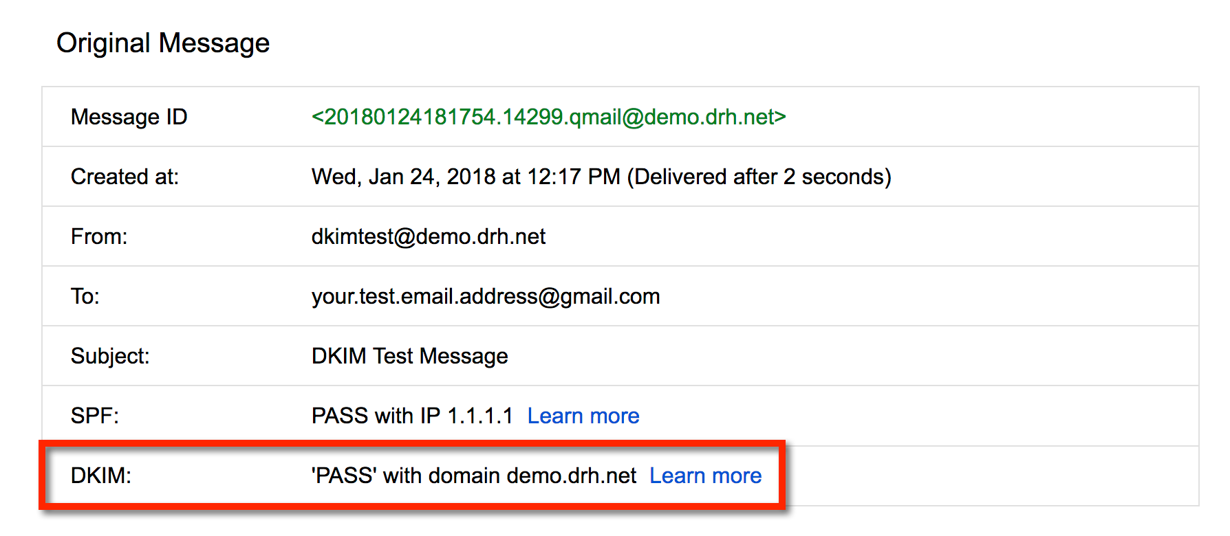 - A test email account that checks DKIM authentication (Gmail is a good choice for this because the accounts are free and they test other things, like SPF).