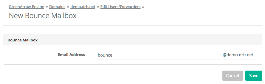 5. Enter the email address that you’d like to receive bounces, and click Save: