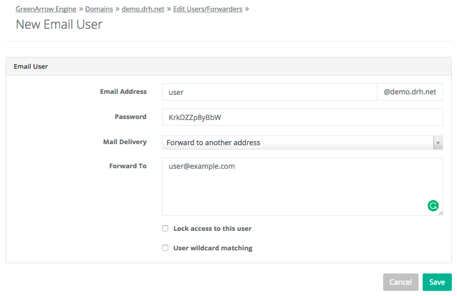 When a new email user is created within GreenArrow Engine, you have a few different options for how to deliver mail received by that user: