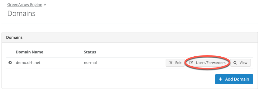 Users/Forwardersbutton next to the domain that you’d like the mailbox to be created for: