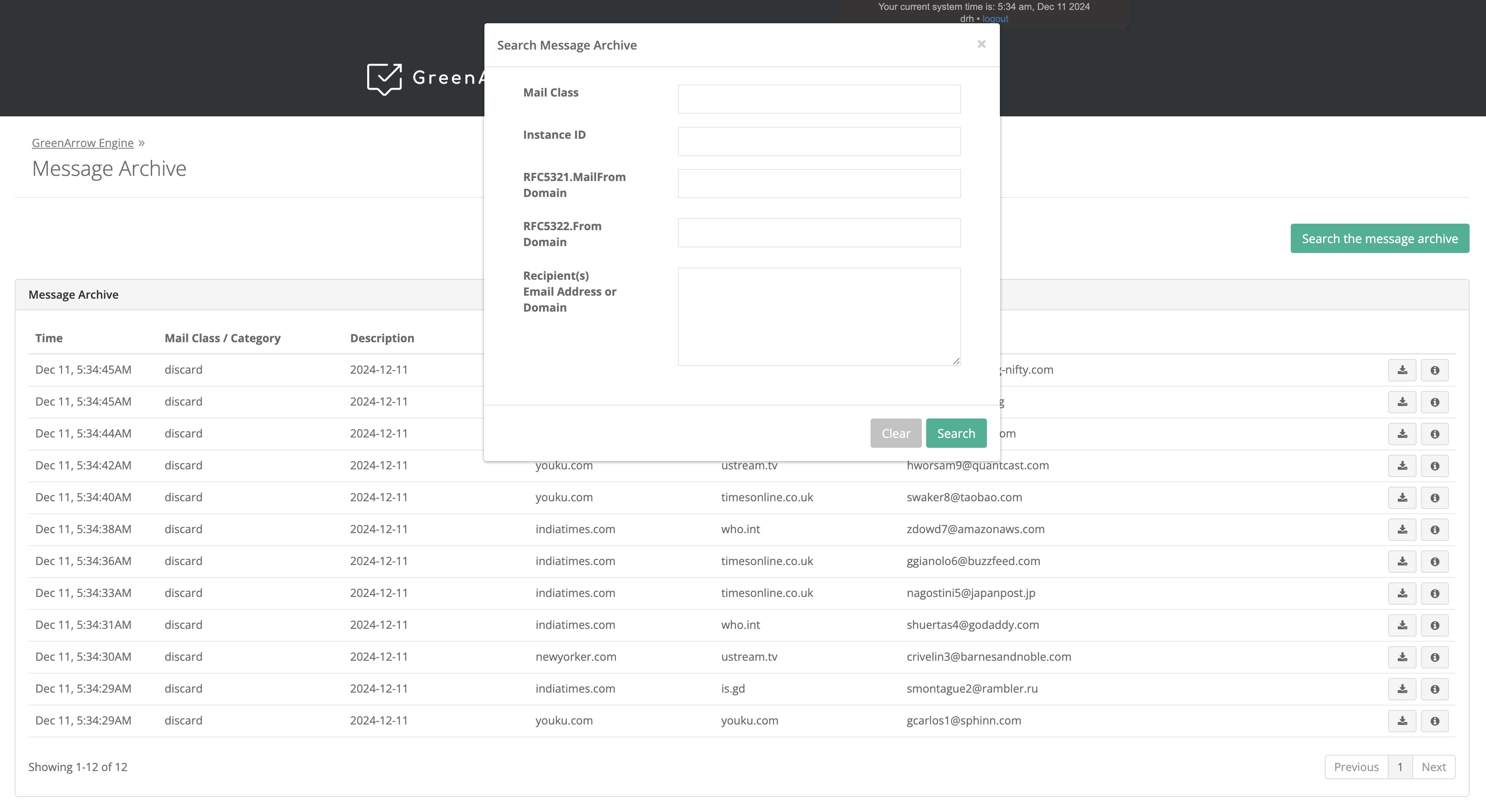 The message archive screen provides the ability to search for messages on the following criteria: